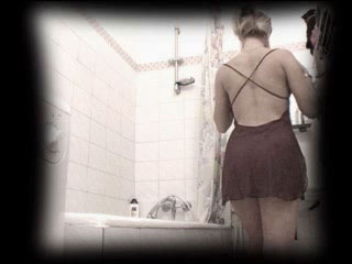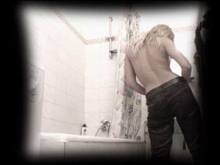Adorable blonde kitty washes her massive round butt in front of a voyeur cam