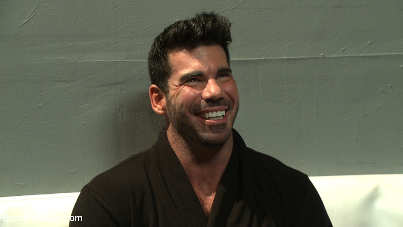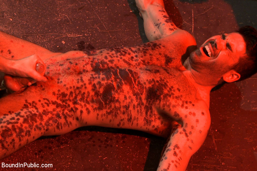 After gang fucking DJ Billy Santoro on the dance floor, the horny crowd carries the bound stud off to the bathroom. They pass him around and have their with him before tying him down to the toilet, everyone gathering on top of each other to watch Billy take a ramming up his ass. The guys line their cocks up and take turns blasting the muscled stud with a face full of cum and having him suck their cocks clean. Hes then taken back to the main stage, his arms and legs spread apart as the guys pour candle wax all over him. Even after enduring the hot wax, Billys cock stands rock hard, aching to cum. They jack the bound stud off and feed his cum right back to him.