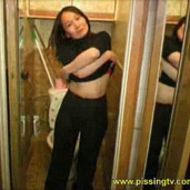Asian shy teen striping and peeing in closet