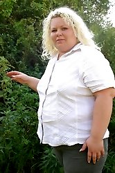 BBW hottie Cynthia getting down and dirty with her boyfriend sucking his cock outdoors