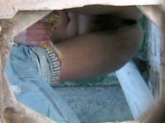 Beach girl pees onto spy cam planted in the john