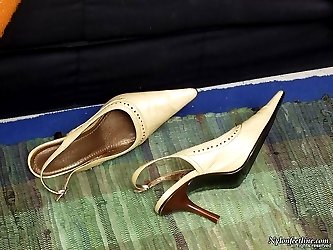 Cutie in reinforced toe tights getting outrageous footjob after sweet sleep