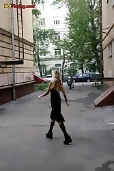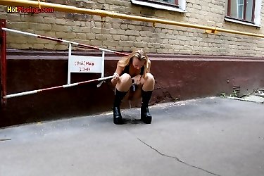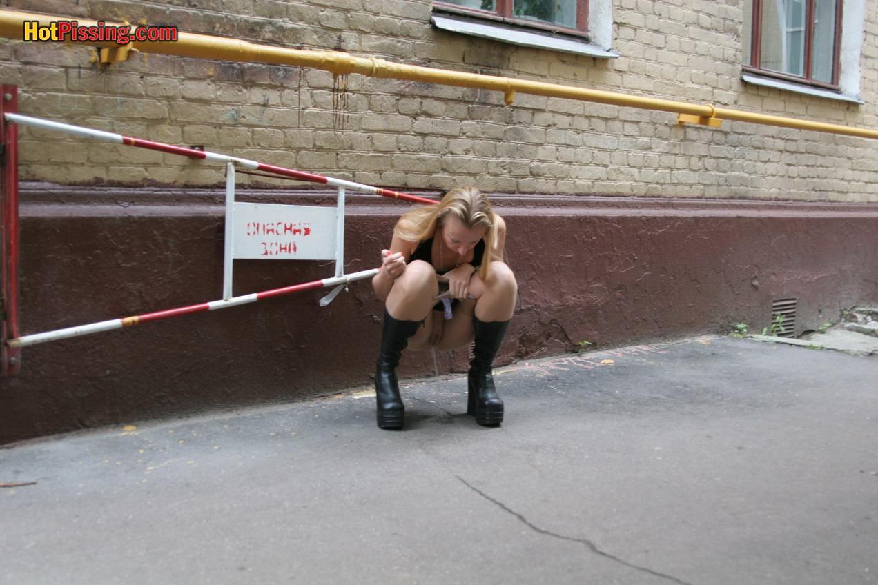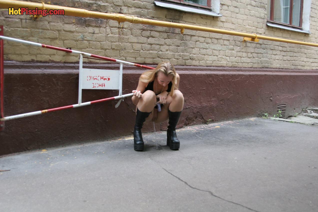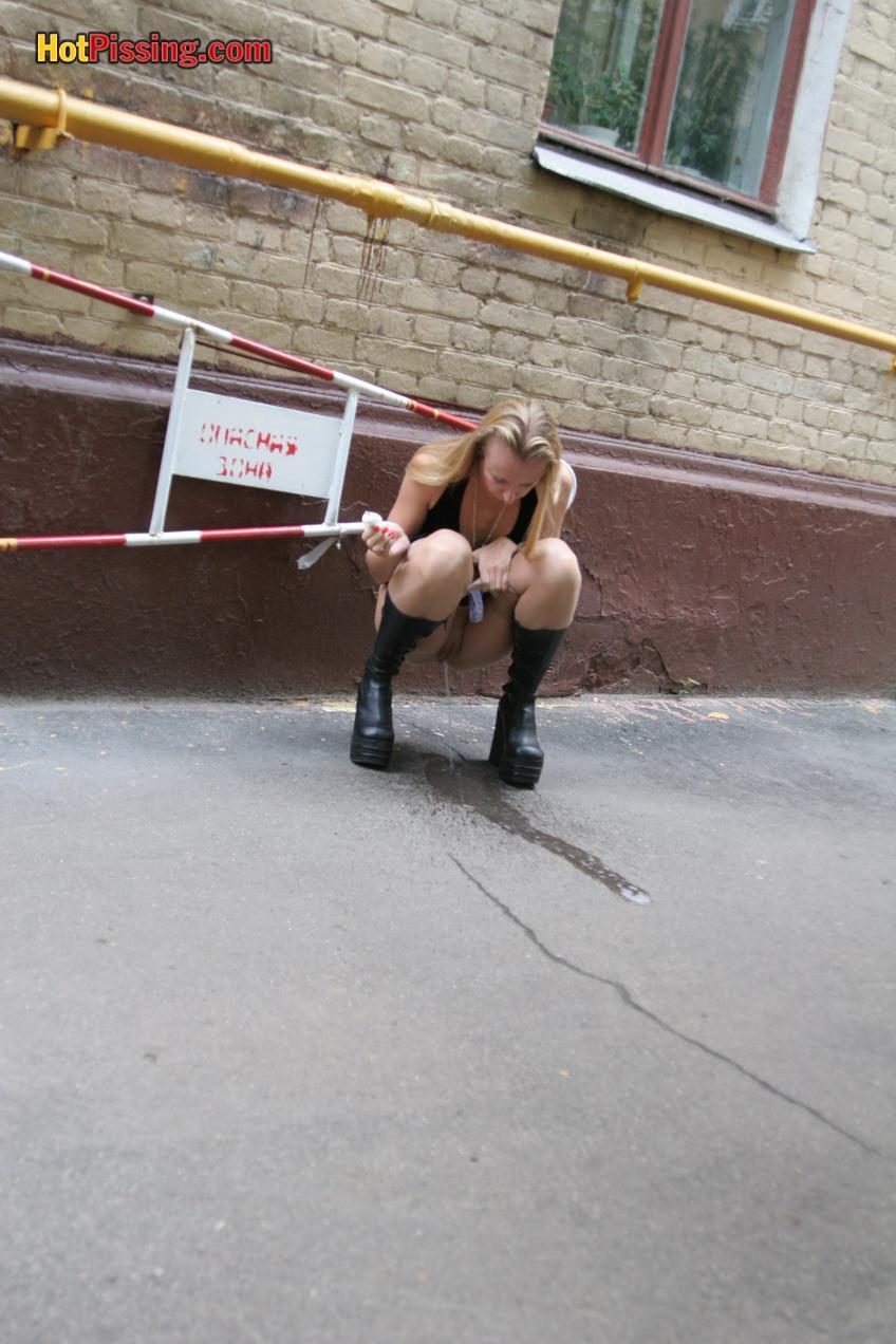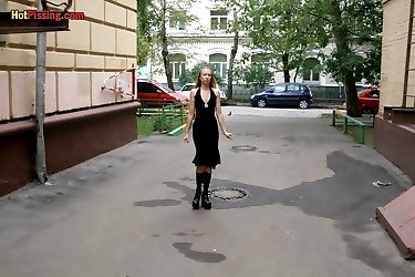 Gothic woman doing a piss in the street