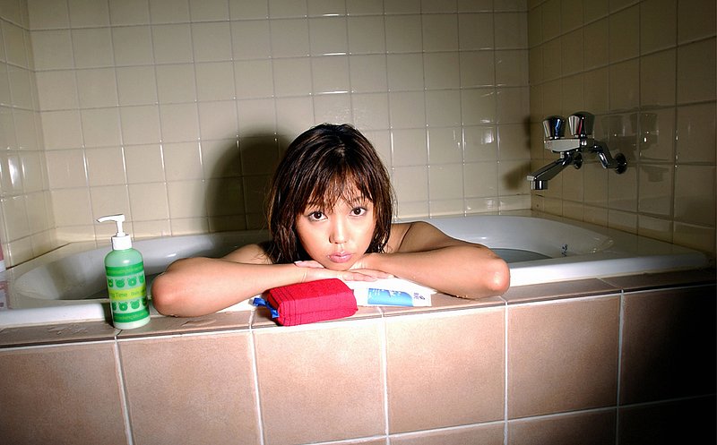 Hot and horny Asian slut takes a bath and shows close-ups of her washing that hairy pussy.