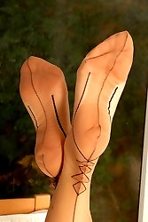 In a sexy hounds tooth pencil skirt Michelle shows her sheer nylon panties, and her eye catching vintage ZigZag heeled ff nylons off to perfection! See the free trailer on site!
