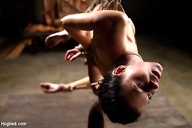 India Summers has a cocky attitude when it comes to her dick sucking ability. Mark Woods puts this horny slut in her place - and doesn`t waste any time getting his huge cock down her throat. In the first scene, she is suspended in a vulnerable backbend. She gets face fucked, fisted and made to cum hard. Next she is hanging ass up, head down. We give her the crop and abuse her pussy with the Hitachi til it`s raw. Ending up in a convenient sideways pose, Mark continues to pound her face with his cock until he`s had his fill of this slut. India Summer never gets back on the ground for this suspension only action packed update!