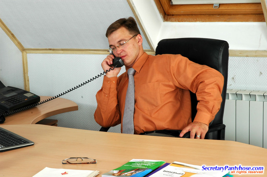 Luscious secretary in black pantyhose seducing her boss into outrageous sex