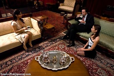 Master Holmes commands his trained wife, Amber, to entertain and sexually service his special guest, Isis, so that their business transaction with be in his favor. Isis is initially taken aback by Ambers obedience but gradually discovers her kinky sadistic desires. Amber is punished, double penetrated and given orgasms by her husband and his sexy business associate. Filmed on The Upper Floor.