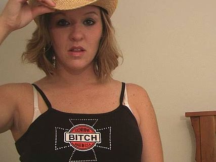 Naughty blonde wife in hat Tessa stripping and masturbating her succulent slit in bedroom