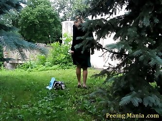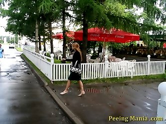 Nude butt of a peeing gal on voyeur cam