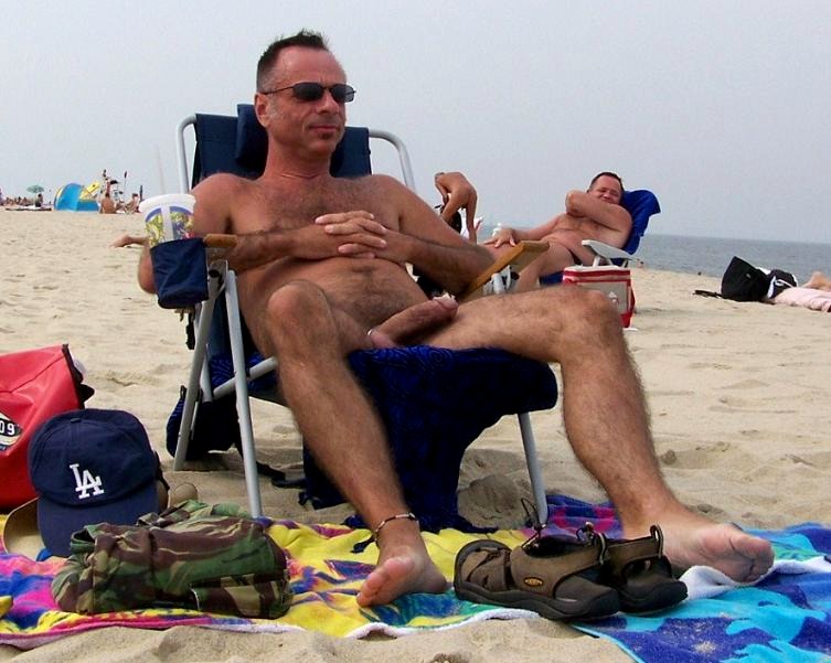 Nude men Sunbathe on the beach