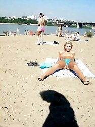 Nudist teen not shy about posing nude at the beach