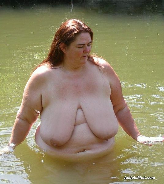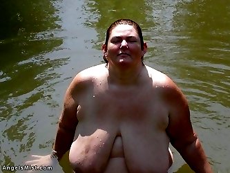Older BBW with big tits nude in the lake