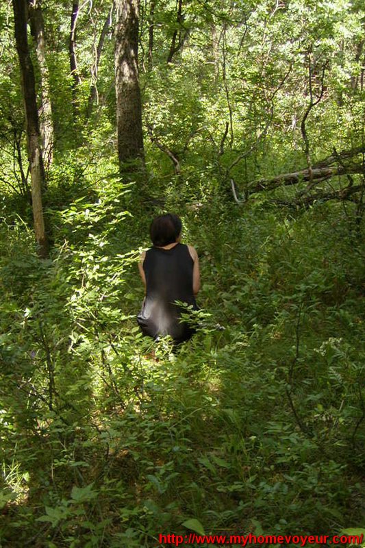 Real voyeur pics of unsuspecting chick caught in bushes while she pisses and shines by her ass