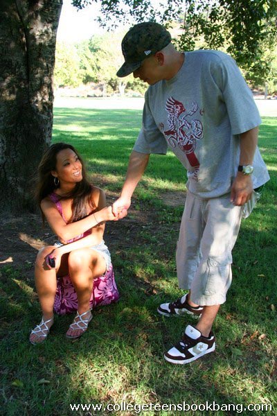 Sexy Asian coed gets her teen pussy fucked in a chair for book cash