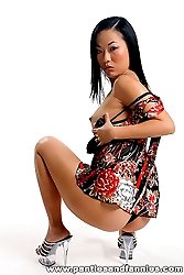 Silky haired Asian hottie shows off her tiny panties