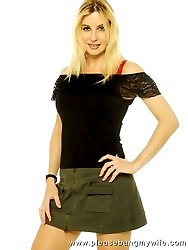 Slutty blonde wife has her tits cum splattered by two hard cocks