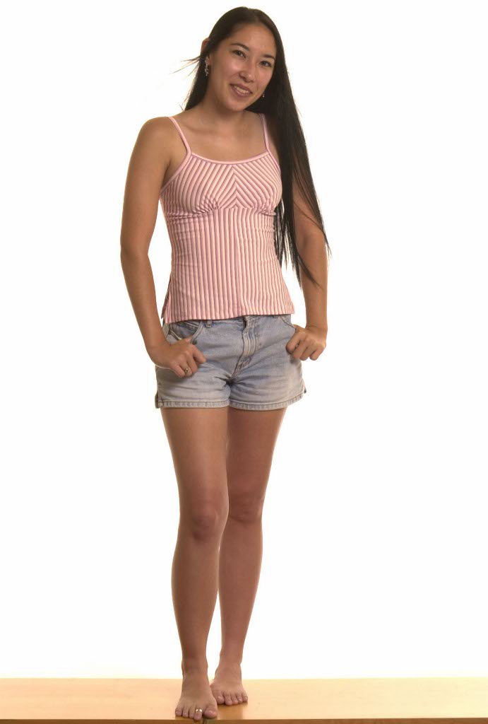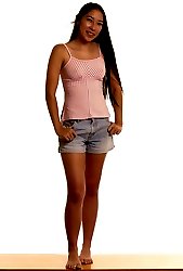Smooth tattooed long-haired asian chick doing naked nude posing