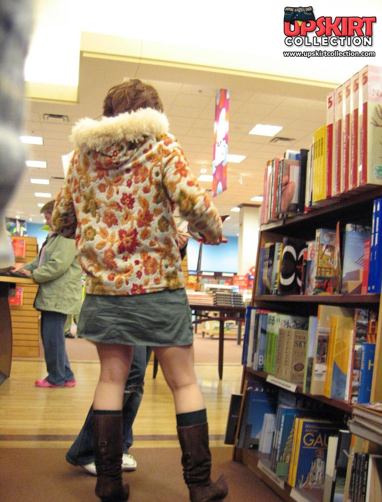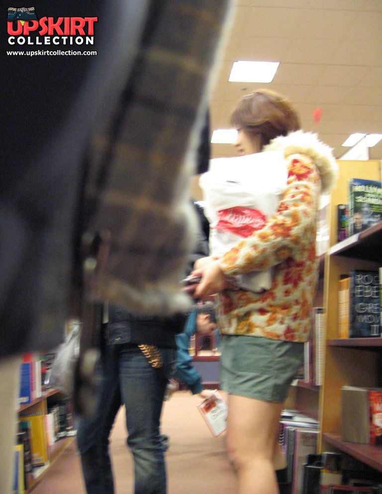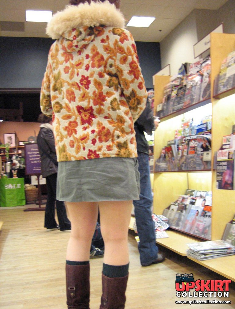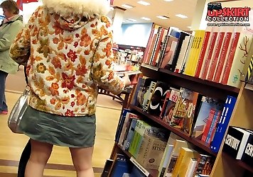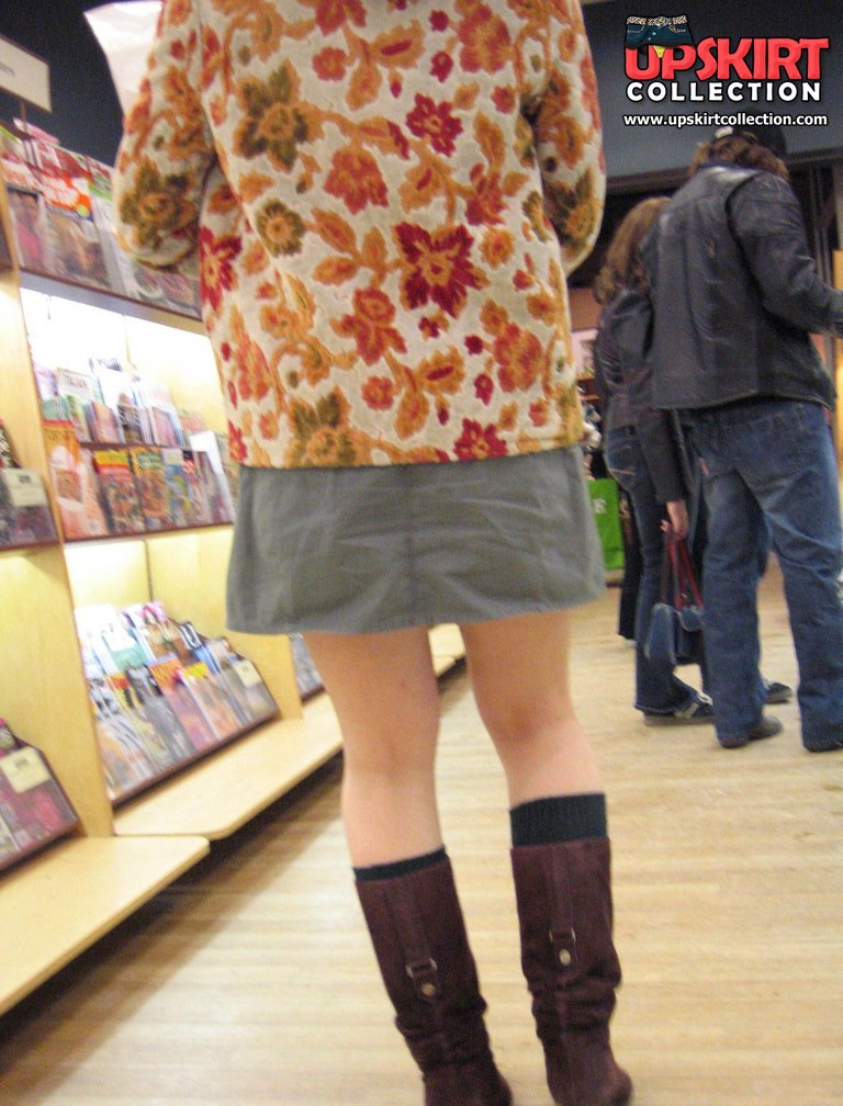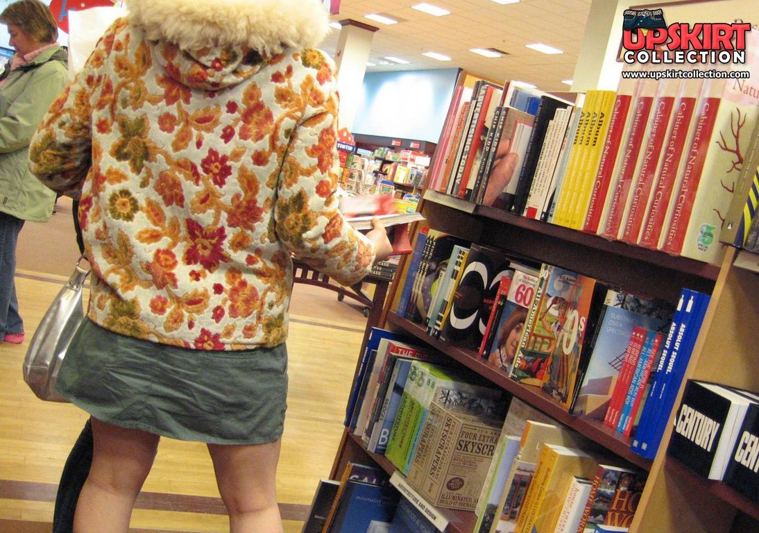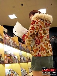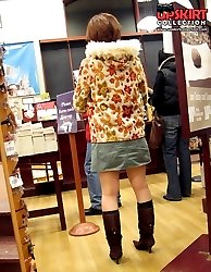 Sneaky upskirt, in a shop. Chubby chick in mini voyeured
