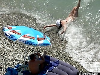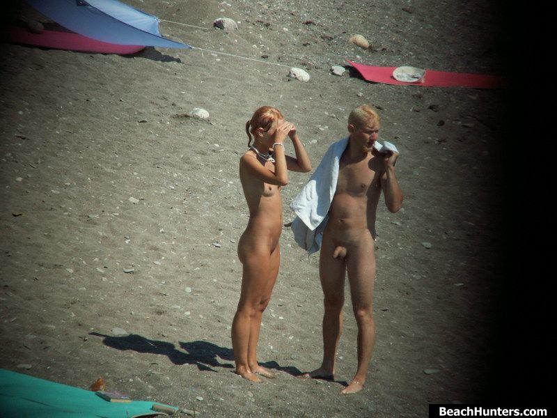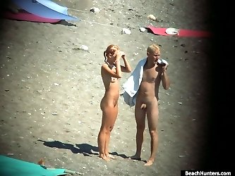 Spy cams film a sunny story of nude fun on a beach