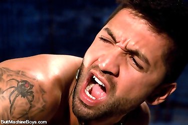 The Ass Master has studly Dominic Pacifico chained up in his dirty prison cell. After a long period, Dominic is ready to give in to the twisted AM wishes. Dominic is made to stretch out his hole over the toilet with the metal balls and a huge black dildo. Theres nothing like having a Scorpion (machine) up the ass in prison. When Dominics hole is nice and wet, AM completely ties him up for the Annihilator machine. First, it fucks him doggie style. Then, it fucks him on his back with his cock and balls tied up. Will Dominic be set free after this torment or will the AM keep him for more sick games?