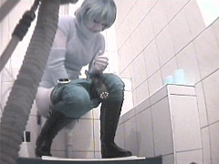 Three sexy girls peeing in front of perverted voyeur