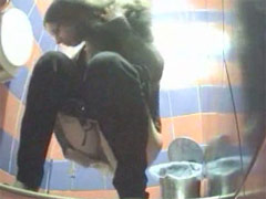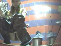 Two babes pissing in a spycammed beach toilet
