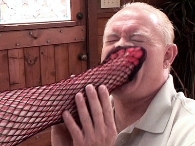 Watch this mature guy fetish and suck on the cute feet of redhead pornstar Miss Bunny