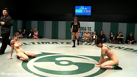 Welcome to Tag Team Tuesdays. Totally non-scripted, all in front of a live audience, all broadcast live to members. Today`s update is RD 2 of 4. This was December`s live match now edited for your enjoyment!br br  Team Purple with Rain DeGrey and Audrey Rose open up a can of whipass and destroy Holly Heart and Bryn Blayne. With the score almost tied going into the round team Purple uses their tags to great advantage as they increase their lead going into the final round. br br  Brutal live action, submission holds and lots of 2 on 1`s. This round was pure energy as each girls gave it their all in front of the live audience! Nowhere in the world can you find authentic tag team female nude wrestling that is not scripted or fake in anyway!