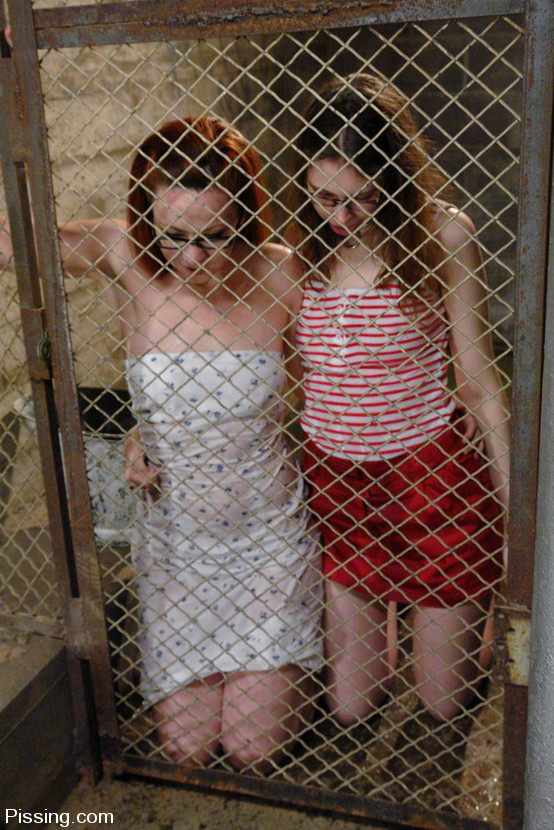 Whats better than watching two beautiful woman locked in a cage pissing in a bucket? Watching them piss on & in each other!BRBR Sit back & relax as you watch Trinity & Kristine succumb to their bladders and then to the whim of their captors bladders.