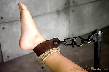 When we bind a girl with her legs spread open we like to call that position the Fuck Me. Marica Hase gets that, but we decided to add a bit of a twist. The 10 inches of Big Black Cock we bury inside of her might be a little much for this petite Asians tight holes, but the way her bondage holds her it isnt going to matter. There is no wiggle room in the way we have her strapped down.